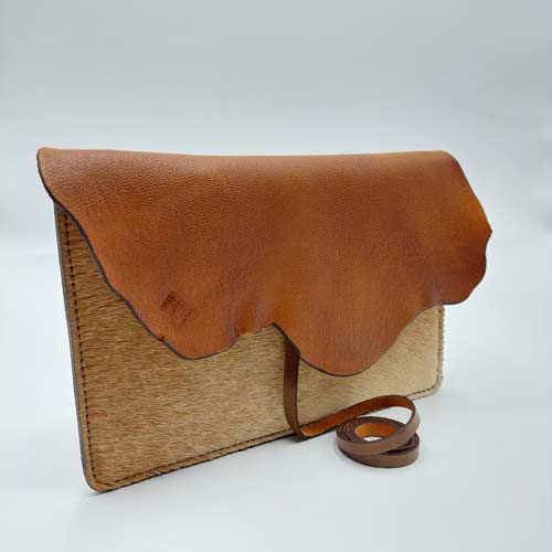 کیف کلاچ چرم طبیعی زنانه، حنا