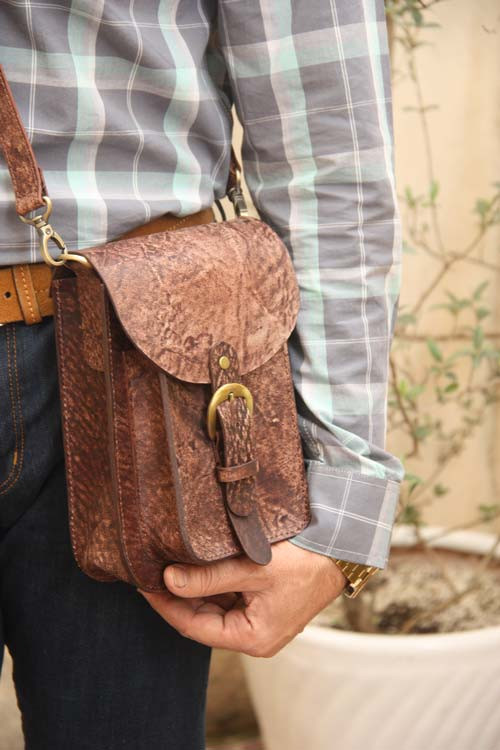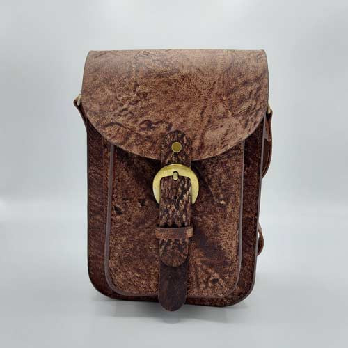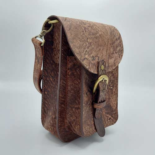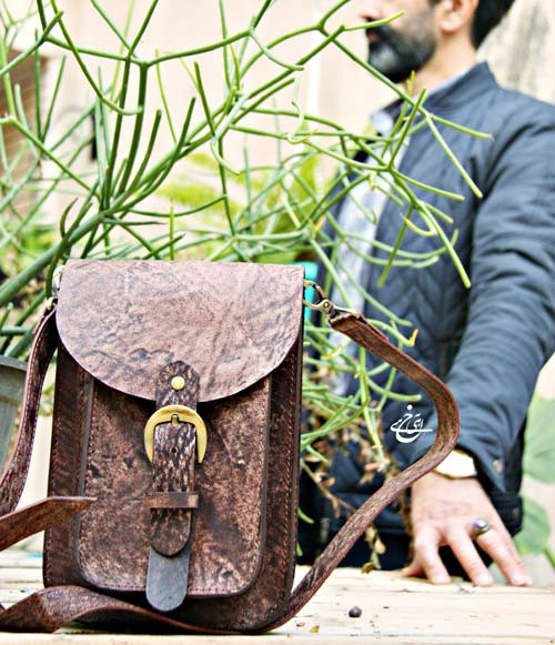 کیف دانشجویی چرم طبیعی کوچک و جادار، درست شده با چرم شتری با تکسچر خاص.