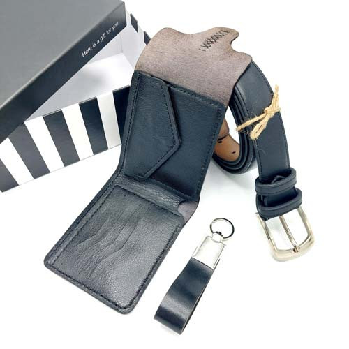 ست کیف پول و کمربند چرم طبیعی مردانه کارا، یه ست چرم طبیعی مردانه شیک، شامل کیف پول جیبی، کمربند و جاسوییچی که یه هدیه جذاب برای خودتون و عزیزانتون است.