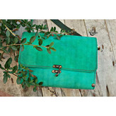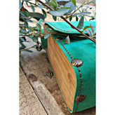 کیف دوشی چرم طبیعی زنانه سبزینه ساخته شده از چرم طبیعی بزی که ترکیب آن با چوب نراد است.