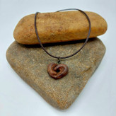 گردنبند چوبی منبت کاری شده که طرح قلب می باشد. این محصول از چوب گردو ساخته شده، بسیار زیبا و دارای چوب با رنگ طبیعی قهوه ای تیره که با رنگ روغن طبیعی رنگ آمیزی شده است.