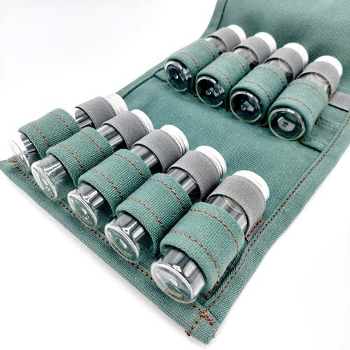 جاادویه پارچه ای با تعداد شیشه 9عدد برای تعداد ادویه بیشتر. مناسب برای آشپزی در طبیعت.