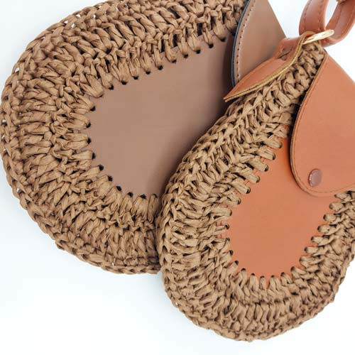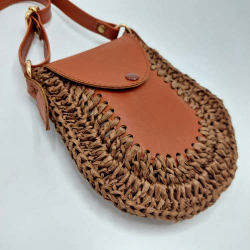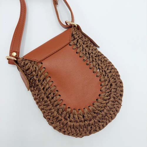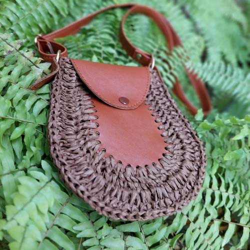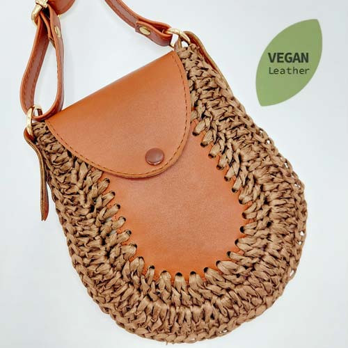 کیف دوشی رافیا و چرم مصنوعی، کیف وگان برای افرادی که دوستدار طبیعت هستند. این کیف ساخته شده از نخ رافیا و چرم مصنوعی است.