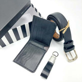 ست کیف پول و کمربند چرم طبیعی مردانه، مدل سیمپل