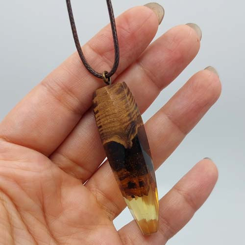 گردنبند زیبای ترکیب چوب و رزین طرح کوه برفی یه یاگاری هنری بسیار زیبا