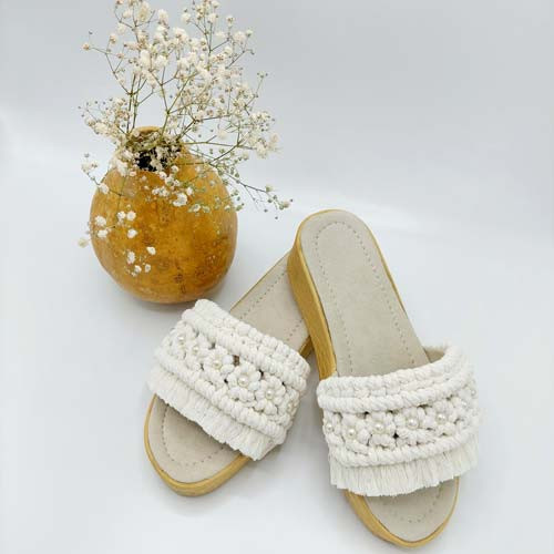 صندل مکرومه طرح گل بابونه یه صندل راحت و زیبا که با هر لباسی ست میشه
