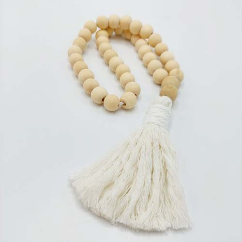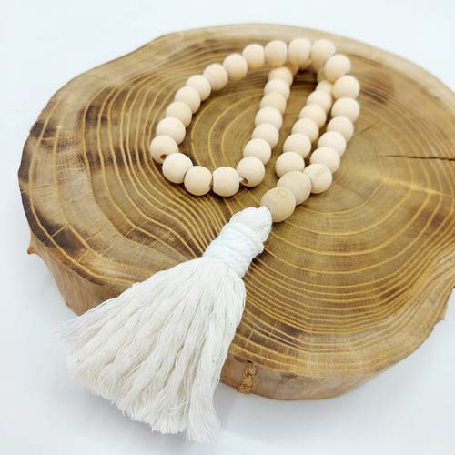 تسبیح چوبی دکوراتیو ساخته شده از مهره چوبی و مکرومه، یه دکوری جذاب برای منزل شما