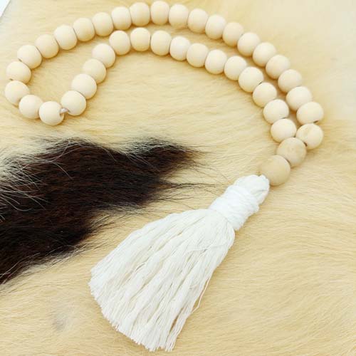 تسبیح چوبی دکوراتیو ساخته شده از مهره چوبی و مکرومه، یه دکوری جذاب برای منزل شما