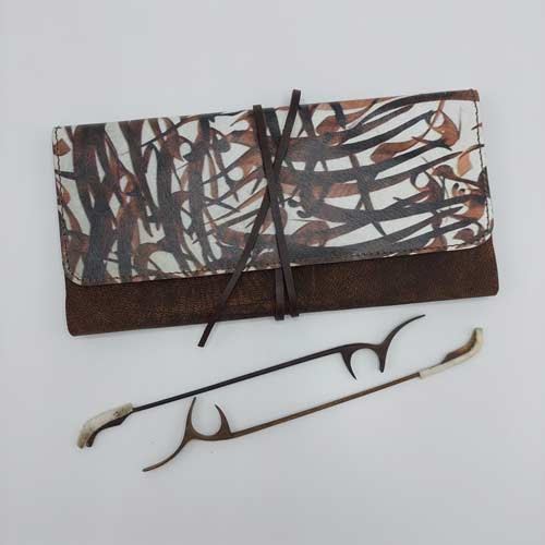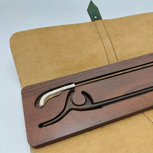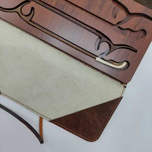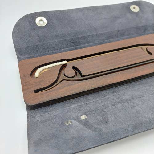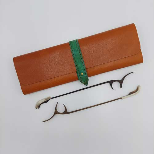 کیف مضراب چرم طبیعی سنتور از چرم بزی و چوب ساخته شده، یک محصول ماندگار برای هنردوستان عزیز.