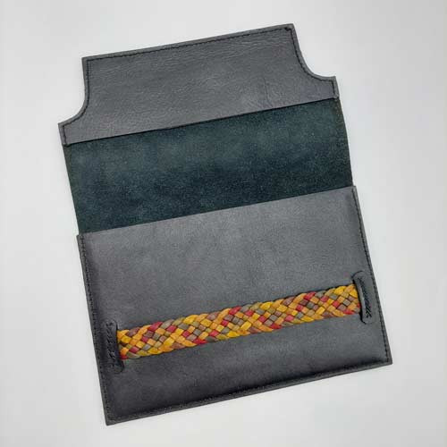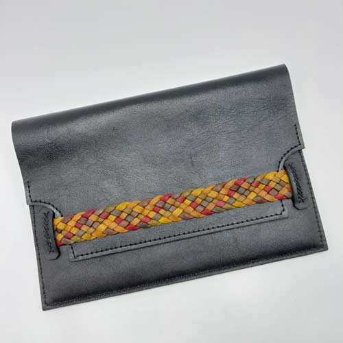 کیف کلاچ چرم طبیعی زنانه با بند بافته شده بارنگ های طبیعی، یه کار سبک و شیک برای خاص پسندها.